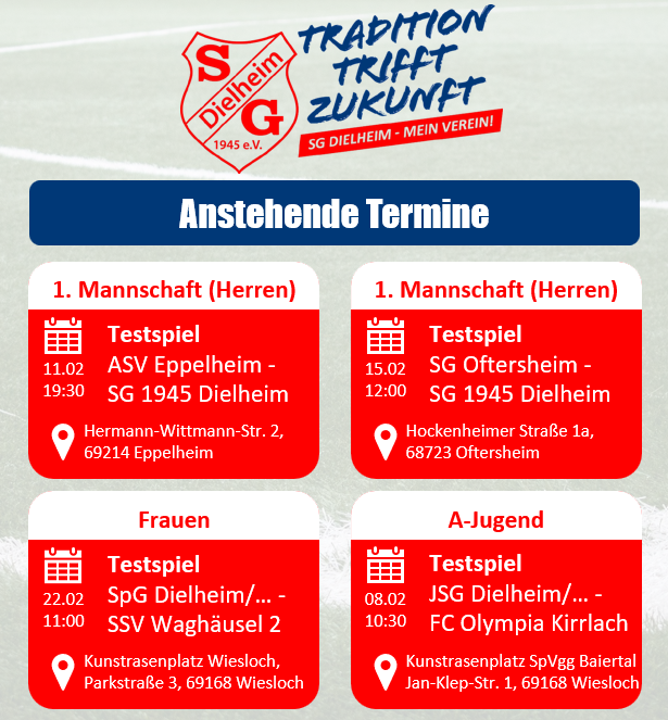 Im ersten Vorbereitungsspiel zur Rückrunde der Saison 2025/2026 konnte unsere erste Mannschaft das Nachbar-schaftsduell gegen Wiesloch mit 3:2 gewinnen. Die Partie unserer zweiten Herren-mannschaft in Karlsdorf wurde abgesagt. Die A-Jugend gewann mit 2:1 gegen Weigendorf/Hartmannshof.